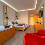 Tot de voorzieningen op de kamers behoren een flatscreen TV met satellietzenders, evenals een minibar, koffie- en theevoorzieningen. Sommige kamers met airconditioning beschikken over een bubbelbad. Gasten kunnen genieten van een uitzicht over de patio.